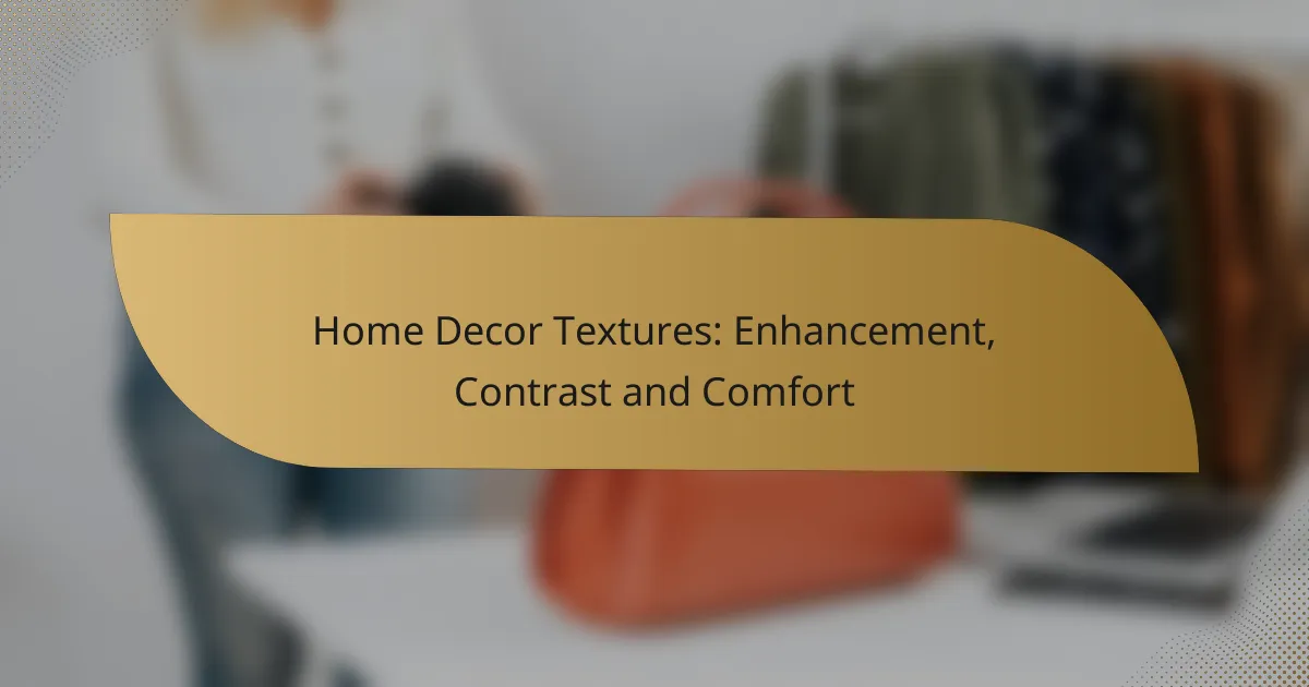Emerging trends in home decor textures focus on enhancing sensory experiences through diverse materials and designs. Key elements include sustainability, natural influences, and tactile contrasts that create a more inviting and comfortable environment.